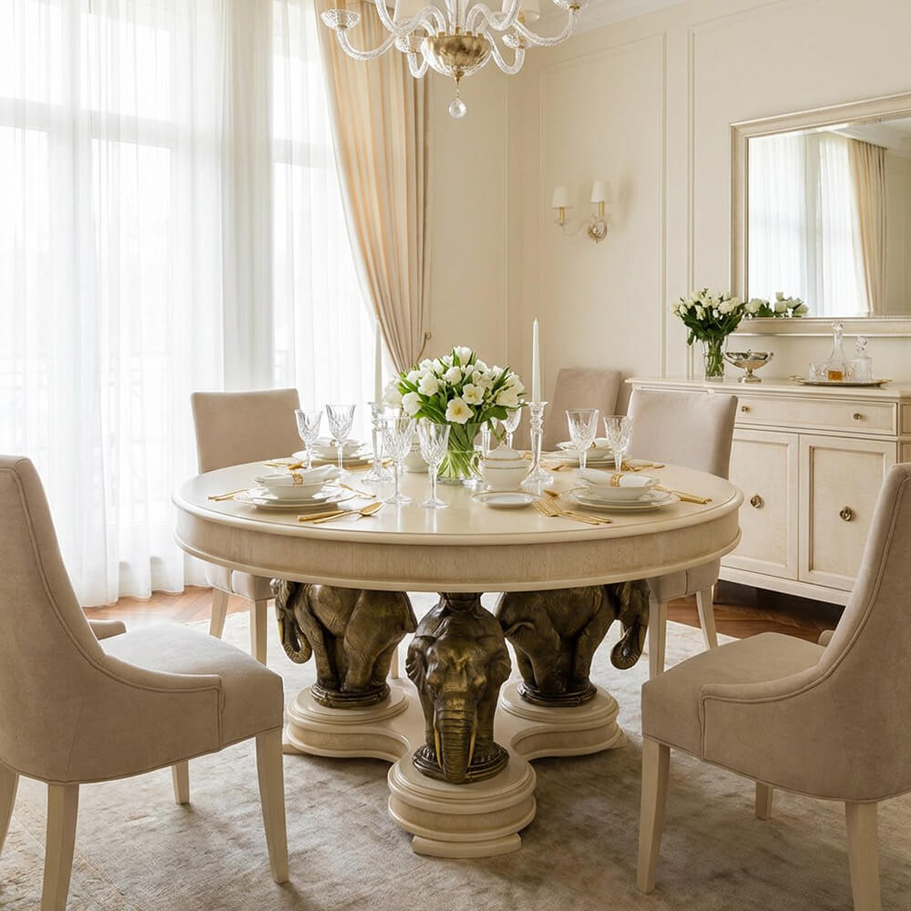 Стол «Элефант» будет идеально смотреться как в рабочей обстановке, так и в столовойЦарский обед или деловые переговоры, которые обязательно будут иметь выгодный исход, – этот стол уместен в любой ситуации.