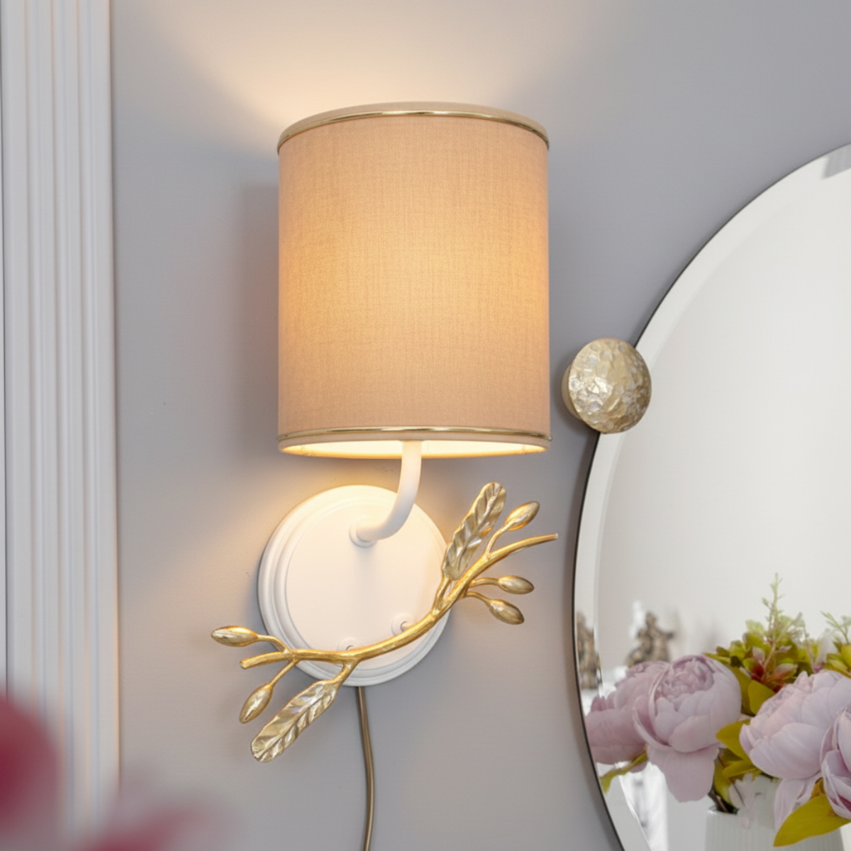 Бра настенный светильник Oliva Branch (Олива Бранч) Айс правое с абажуром Терра Беж - img65610