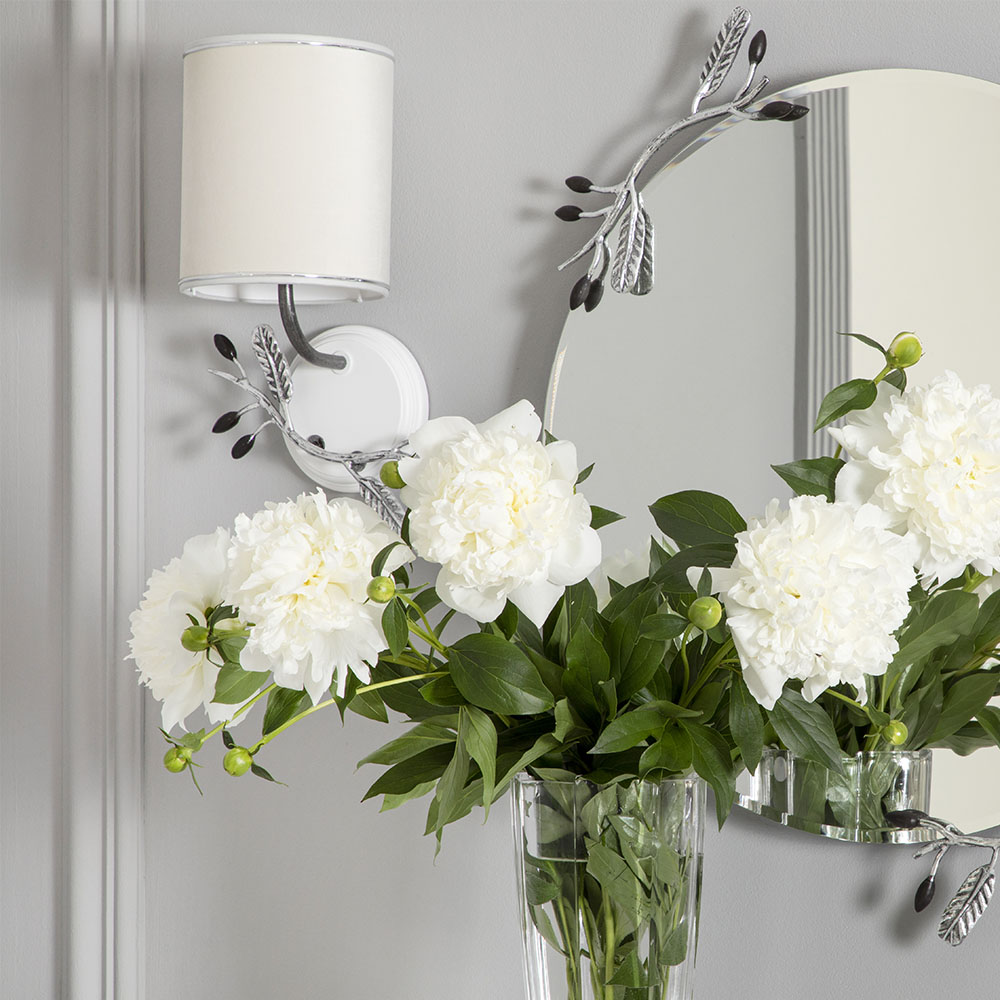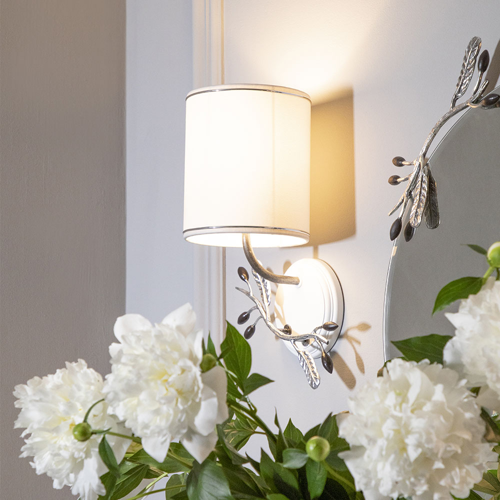 Эстетическая уникальностьКованые элементы передают красоту и изысканность оливковой ветви, но при этом они сдержанные и элегантные. Тканевый абажур ручной работы создаёт эффект мягкого, красивого свечения.