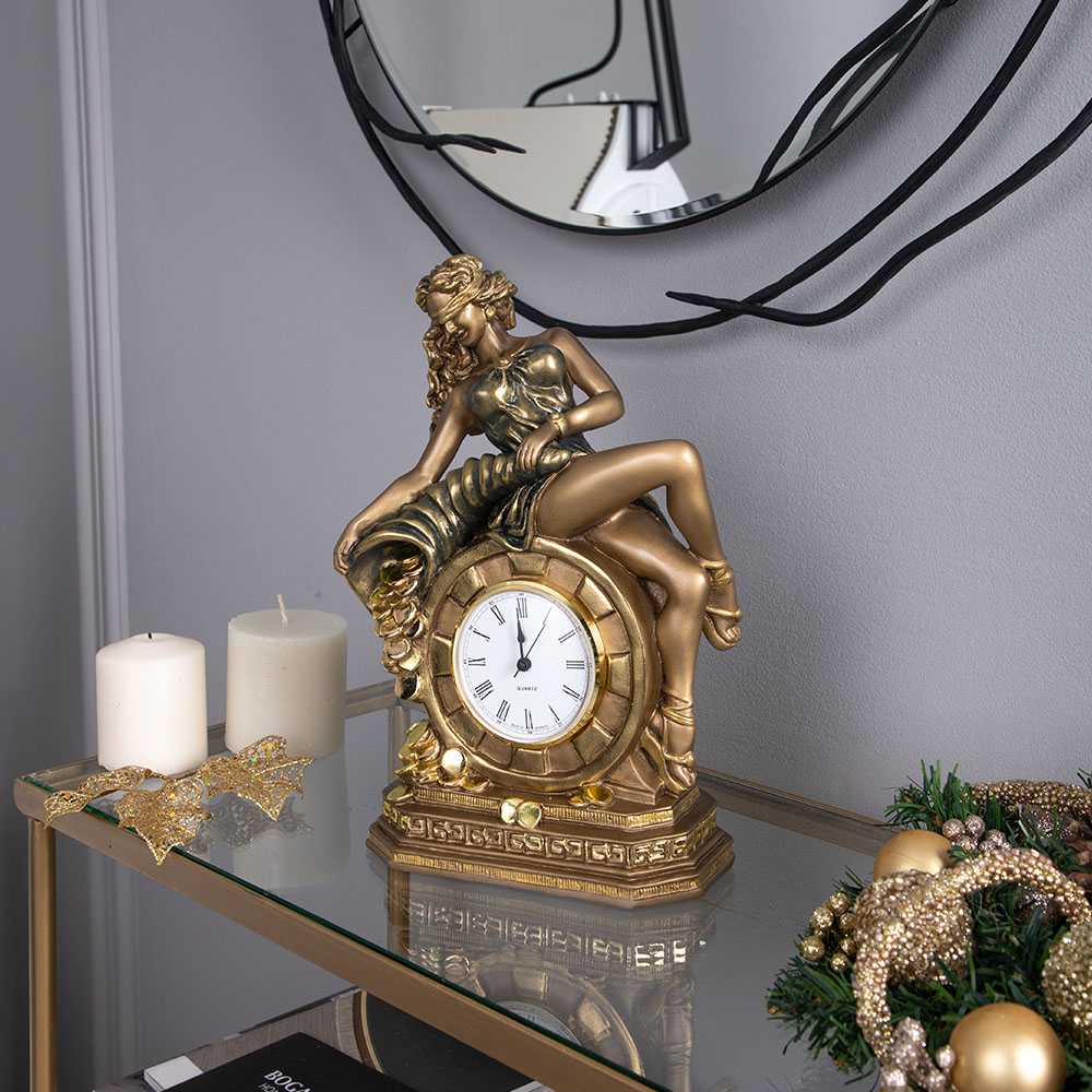 Часы интерьерные отличаются не только эстетикой, но и практичностью. Мраморное основание придает изделию устойчивость и солидность, а компактные размеры позволяют найти для часов место на любой поверхности — рабочем столе, полке, каминной полке или туалетном столике.