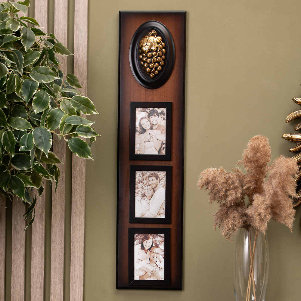 Декоративная рамка для трех фото 10х15 см с мраморным декором виноград. Настольная фоторамка на магнитах из МДФ с поталью. Подарок на годовщину, новоселье, день рождения. Доставка по РФ.