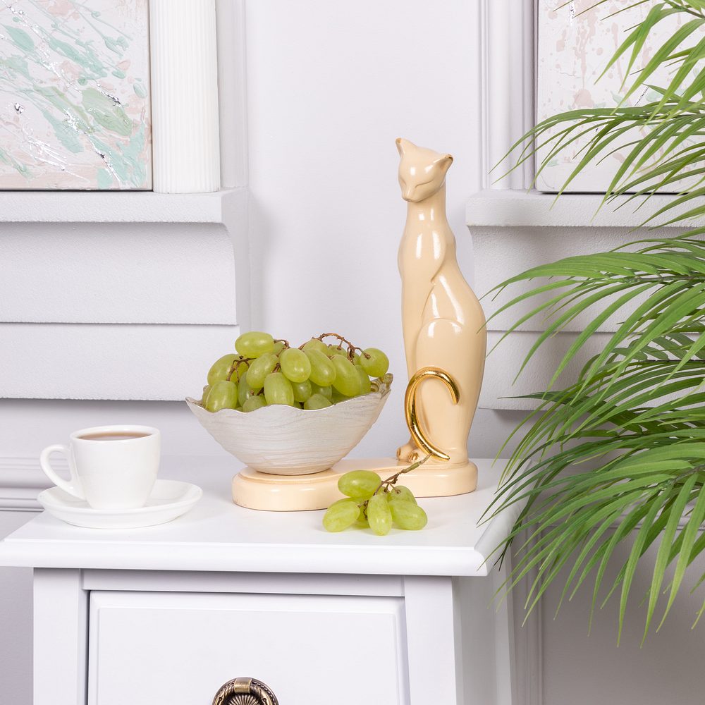 Фруктовница-конфетница «Кошка Шелби» — оригинальное решение для украшения стола и интерьера. Изящная фигурка кошки гармонично сочетается со стеклянной чашей, которая подходит для фруктов, сладостей и конфет. Такой аксессуар станет не только практичной деталью, но и декоративным акцентом, создающим атмосферу уюта и стиля. Фруктовница идеально впишется в гостиную, кухню или столовую и станет отличным подарком для любителей изысканного декора.