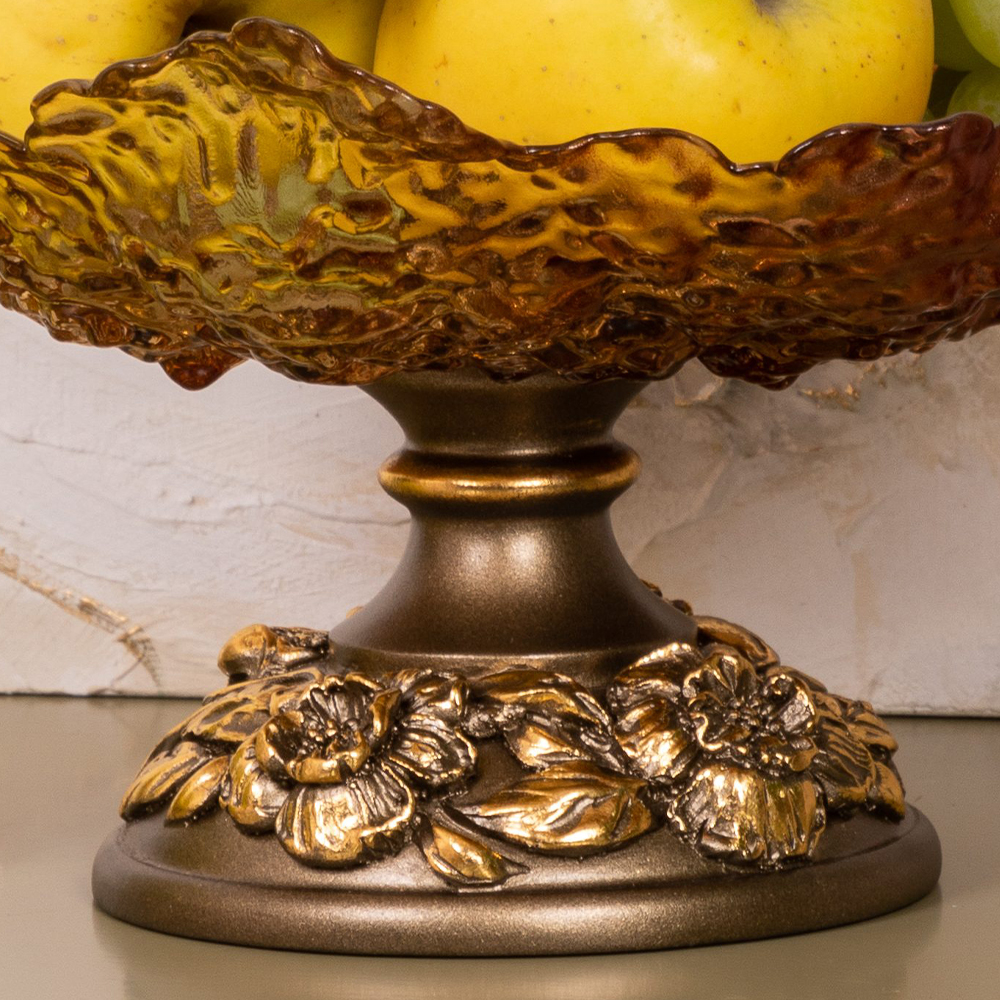 Фруктовница-конфетница «Лето» — изысканный акцент для вашего интерьера и стильный способ подать угощение. Фигурная основа из прочного литьевого мрамора поддерживает стеклянную чашу, в которой красиво смотрятся свежие фрукты, конфеты, орехи или десерты.