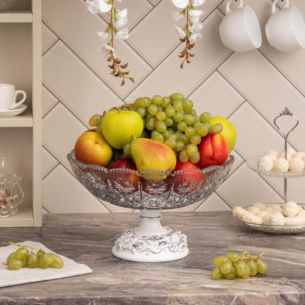 Фруктовница-конфетница Лето со стеклянной чашей – яркий и функциональный акцент для вашего интерьера. Прозрачная стеклянная чаша гармонично сочетается с декоративным основанием, создавая лёгкую и стильную композицию на столе. Эта фруктовница придаёт атмосферу свежести и радости любой кухне, гостиной или столовой.