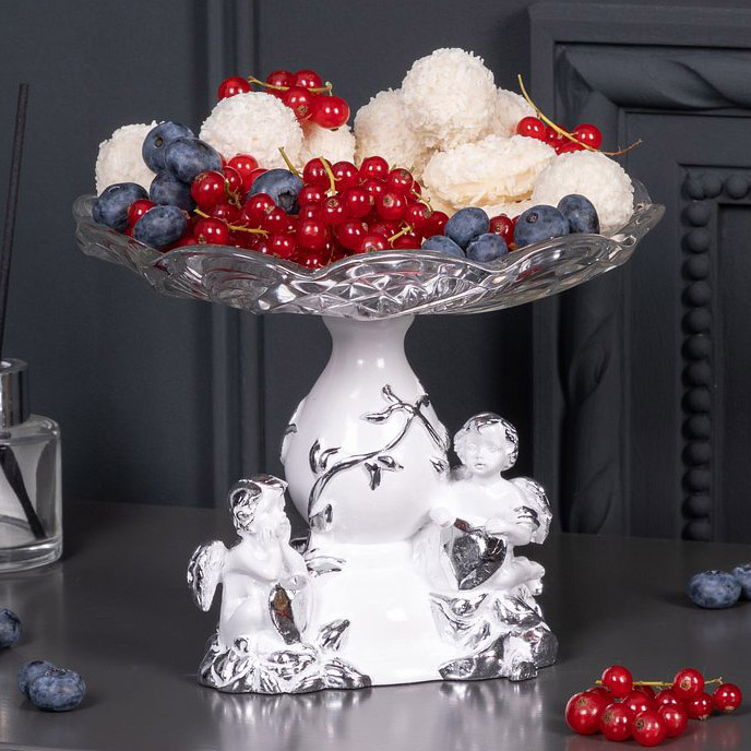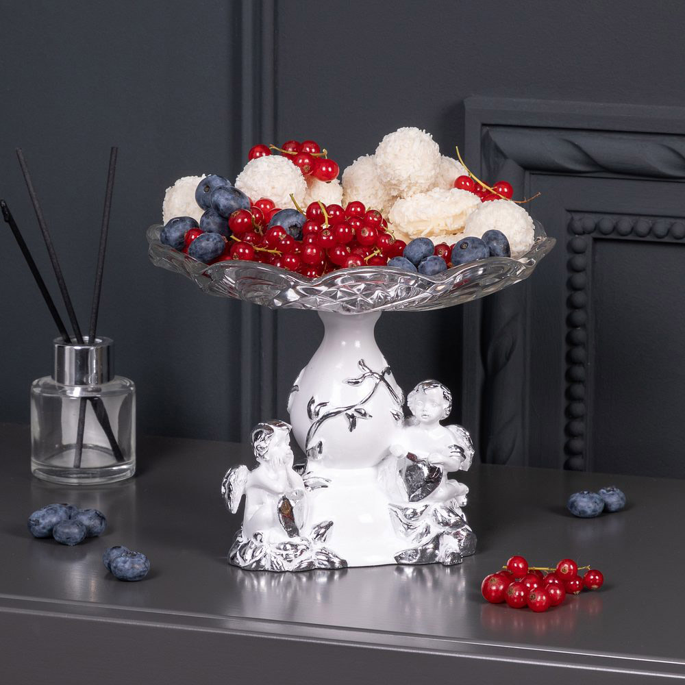 Фруктовница-конфетница Мерси со стеклянной чашей Серебро