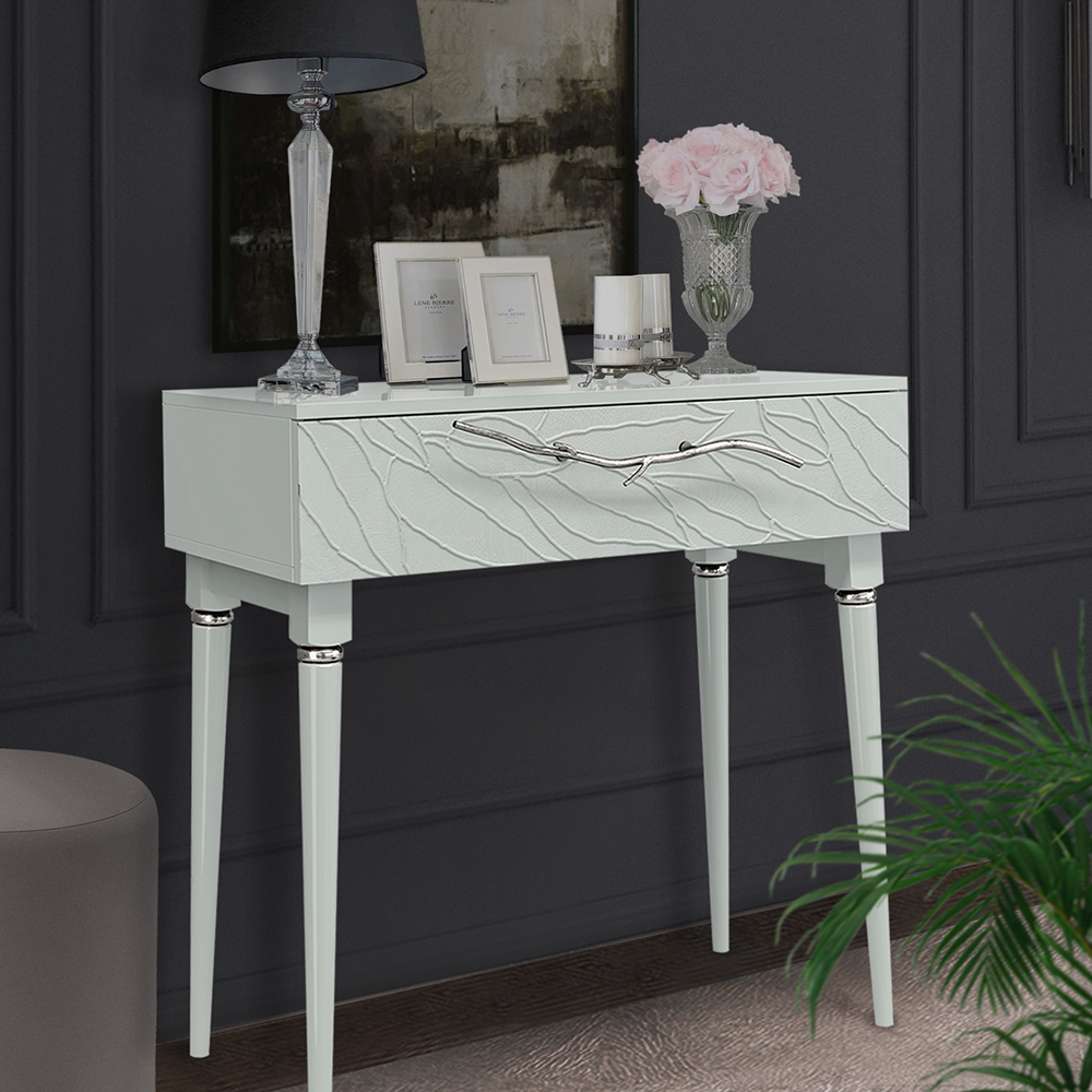 Этот туалетный столик с ящиком станет незаменимым помощником в ежедневных ритуалах красоты. Используйте его как стол для макияжа (гримерный столик), установив сверху зеркало. Просторный выдвижной ящик на качественных направляющих позволяет хранить косметику, украшения и документы в полном порядке.