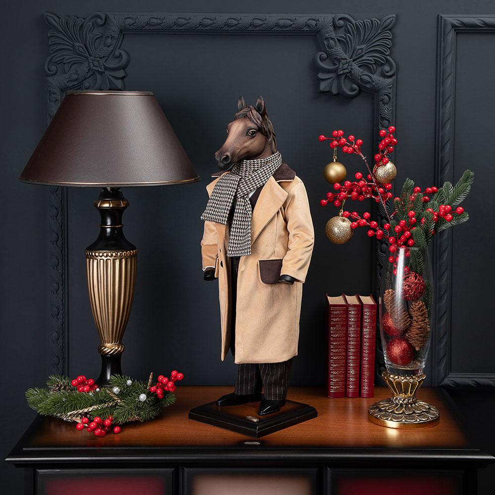 Коллекционная интерьерная кукла «Конь Сэр Джон» – утончённый джентльмен в стильном образе. Символ года 2026г.