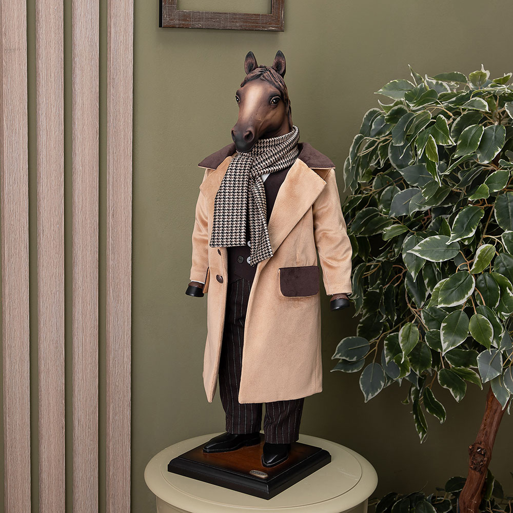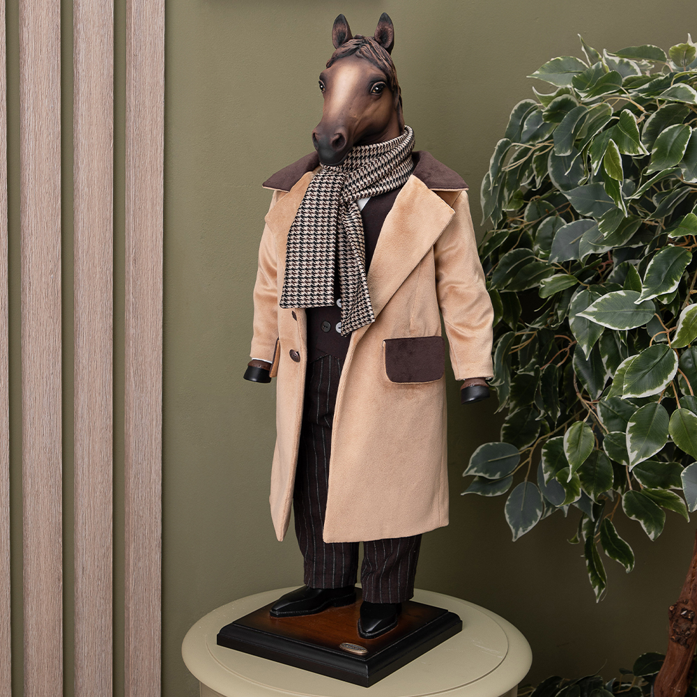 «Сэр Джон» – воплощение безупречного английского стиля и аристократичного шарма. Эта коллекционная кукла представляет собой статного жеребца в элегантном пальто с шарфом, где каждая деталь подчеркивает его благородный статус и безупречный вкус.