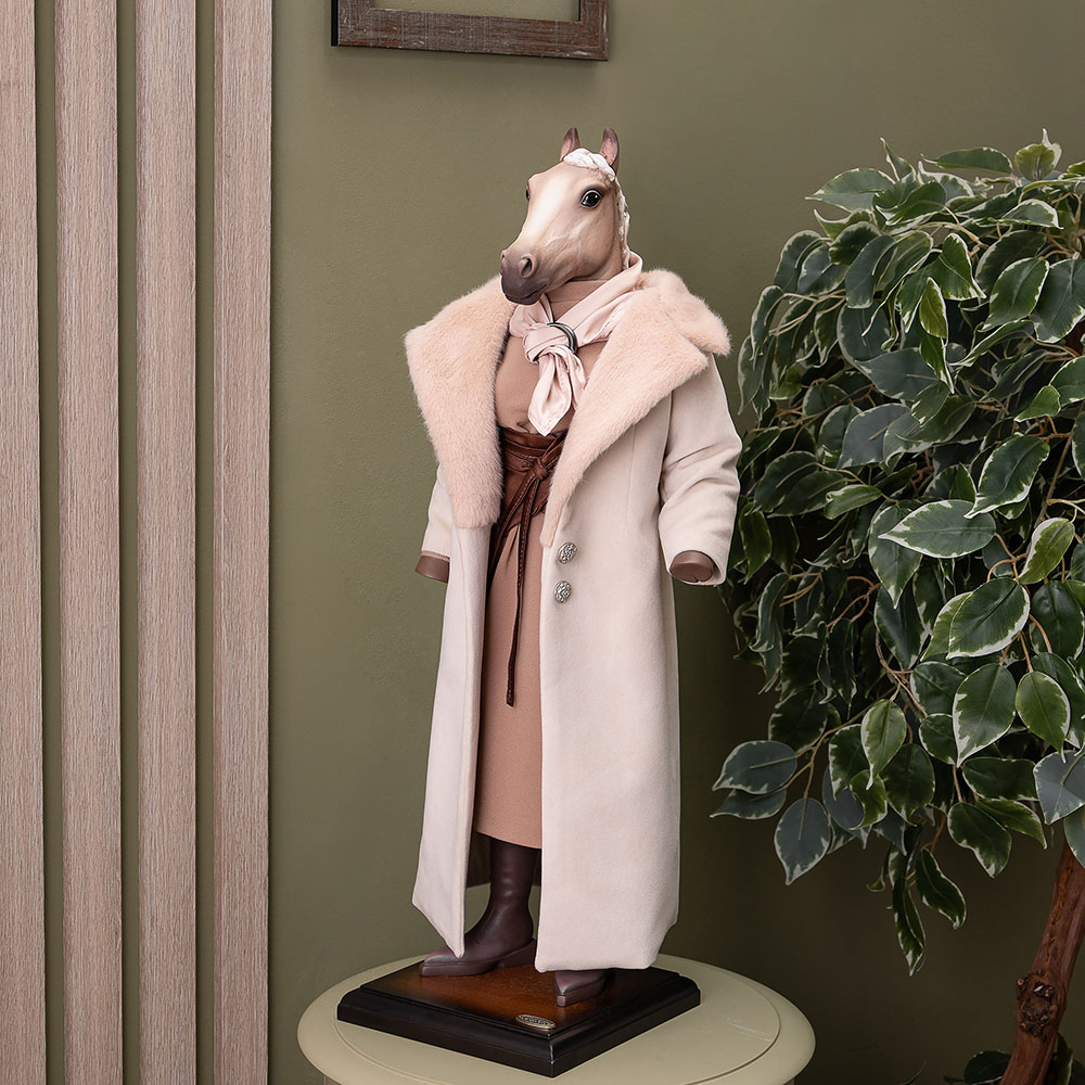 «Леди Беатрис» – воплощение изысканного зимнего стиля викторианской эпохи. Эта коллекционная кукла представляет собой благородную лошадь в элегантном женском пальто с меховой отделкой, где каждая деталь отражает статус и безупречный вкус истинной леди.