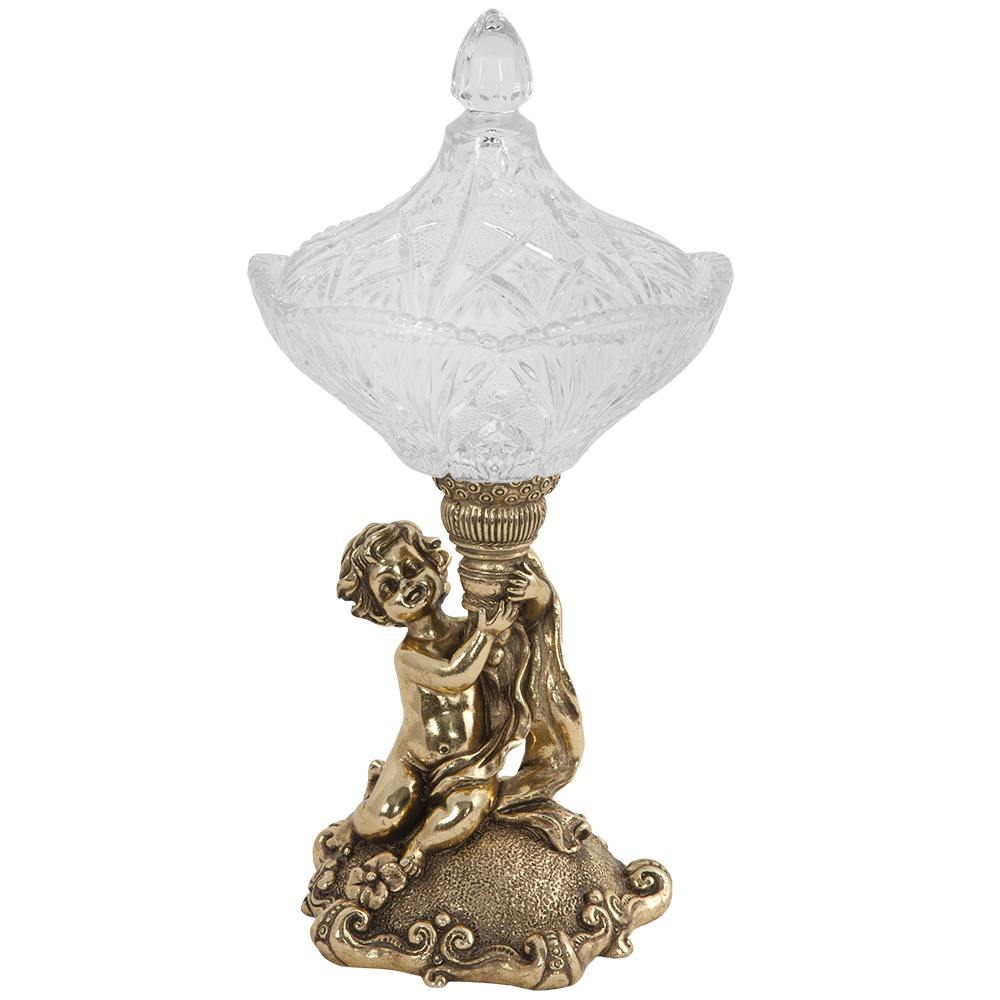 Сахарница на ножке тщательно упакована для безопасной транспортировки. Изделие помещается в ложемент, оборачивается воздушно-пузырчатой пленкой и укладывается в прочную коробку из гофрированного картона. Это гарантирует, что декор для интерьера приедет к вам в целости и сохранности.