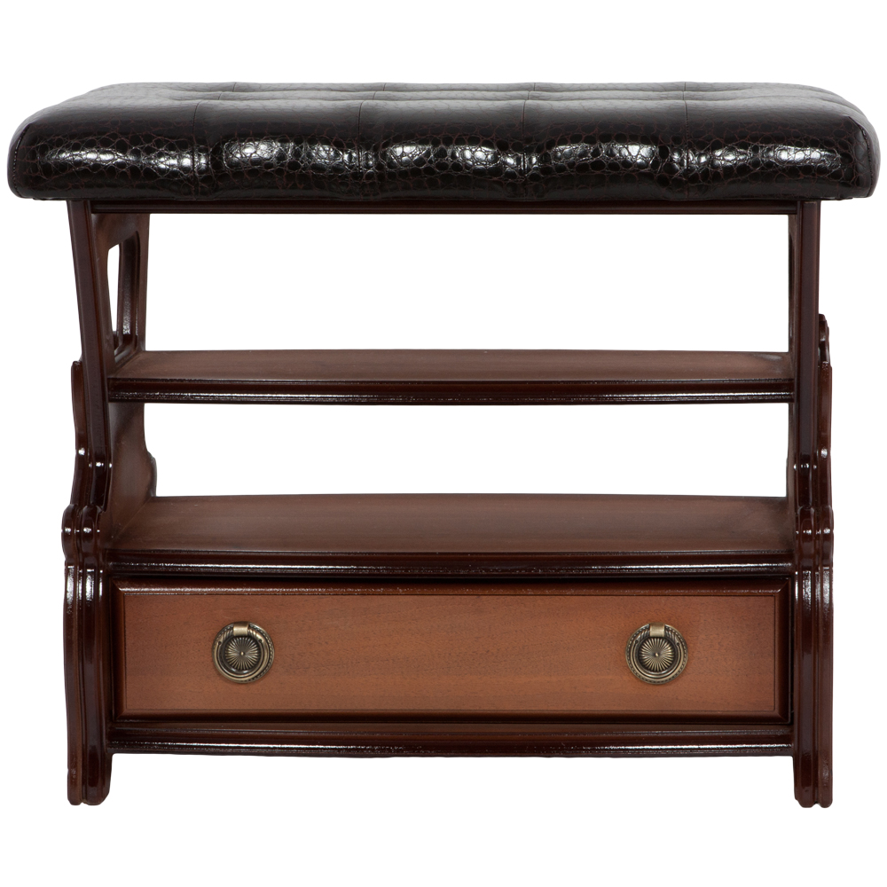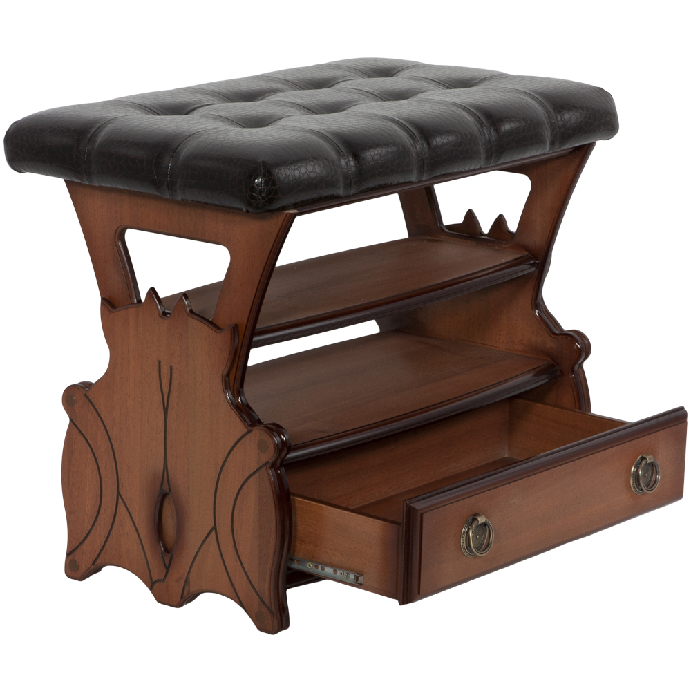 Скамья с нижним выдвижным ящиком и двумя полочками. Торцевые стороны декорированы фигурами кошек. Посадочное место выполнено в классической техники капитоне. Изделие отличается прочной устойчивой конструкцией и прослужит не один год! Гарантия на изделие - 24 месяца.