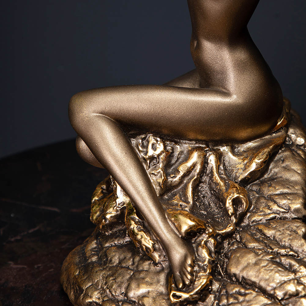Элегантная бронзовая скульптура девушки станет изысканным акцентом в интерьере. Фигура, сидящая на камне, олицетворяет гармонию, красоту и спокойствие, создавая атмосферу уюта и роскоши.