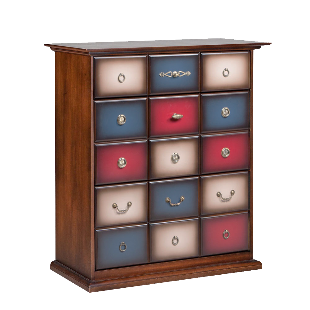 Каркас и ящики тумбы выполнены из высококачественного МДФ. Поверхность проходит сложный процесс ручной обработки: тонирование и покрытие лаком. Это придает изделию эффект благородной старины и глубину цвета, характерную для стиля «винтажный шарм». Каждая деталь фасада уникальна и несет отпечаток работы мастера.