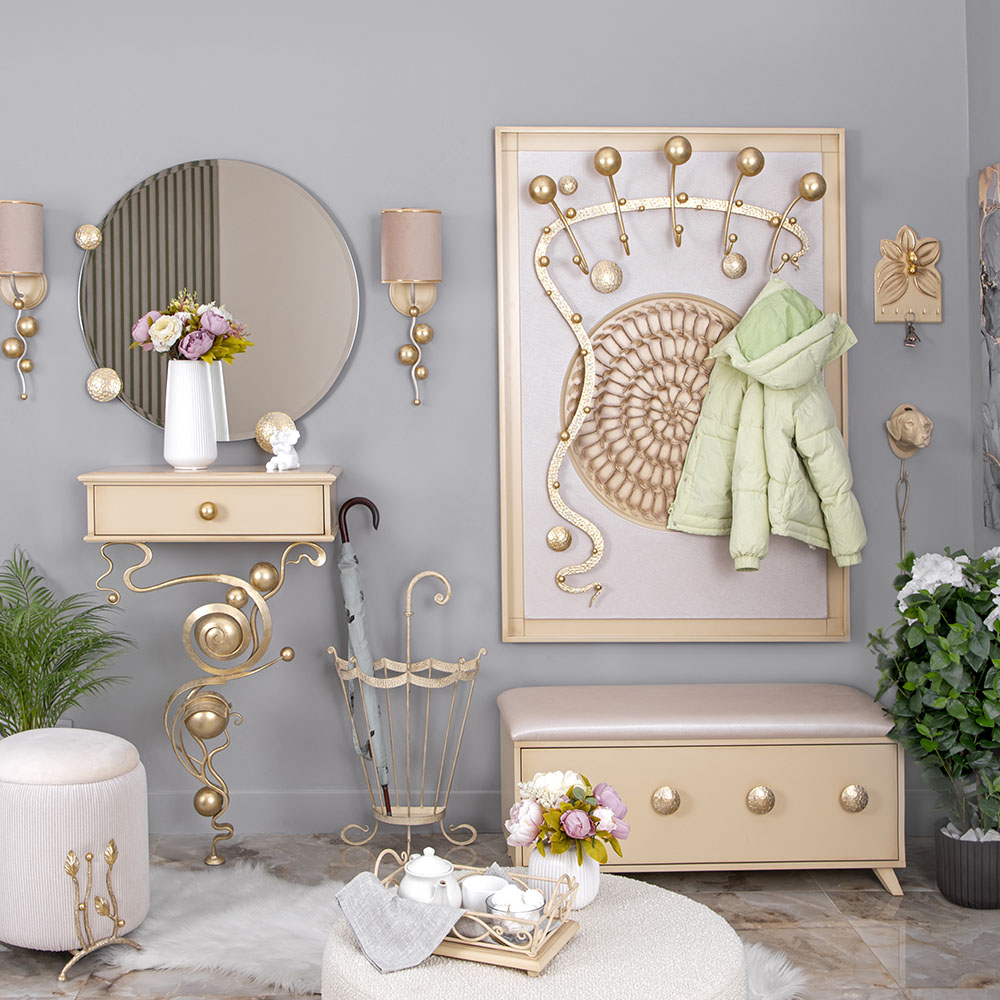 Кованый декор и классические формы вешалки гармонично дополнят любой современный интерьер: от лофта до неоклассики. Благодаря широкой цветовой гамме, модель легко подобрать под существующий мебельный гарнитур в квартире, загородном доме или на даче.