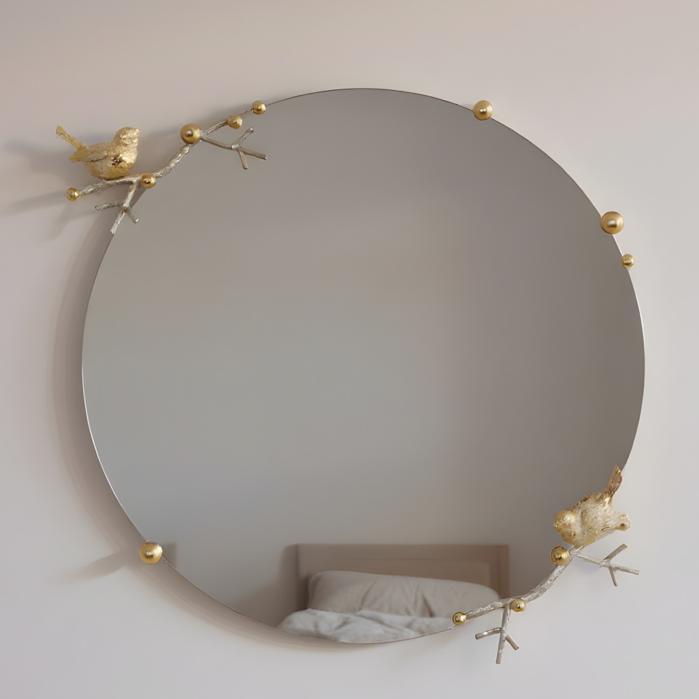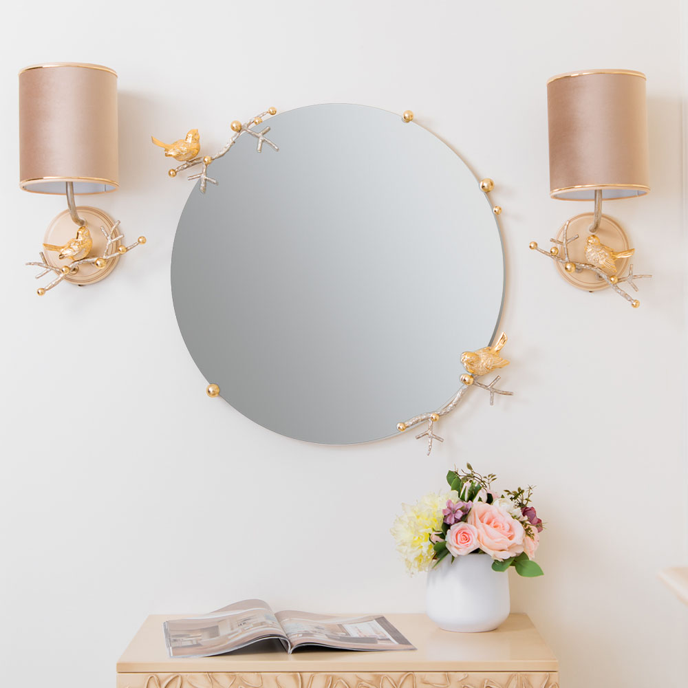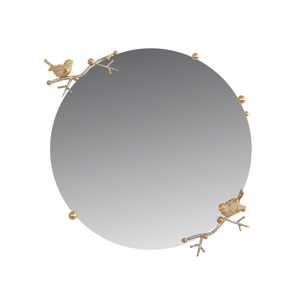 Зеркало «Терра» выглядит лаконично, элегантно и праздничноНа декоративных ветвях из кованой стали расположились маленькие птички, они словно только что вернулись из тёплого края и приветствуют весну, напевая свои звонкие мелодии. Это зеркало – тонкая и аккуратная ручная работа, в которую мастера фабрики BOGACHO действительно вложили душу. Для создания наших зеркал используются уникальные и безопасные материалы: это гарантия долговечности и качества. Диаметр зеркального полотна: 60см. Толщина: 4мм.