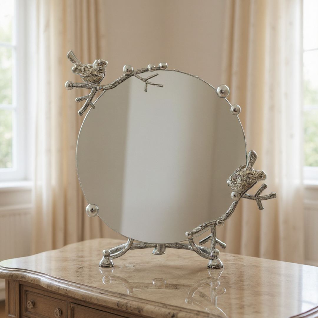 Интерьерное зеркало BOGACHO Терра Айс Античное серебро отлично подойдёт для пространства в эко-стиле, стиле Прованс или Арт-деко.